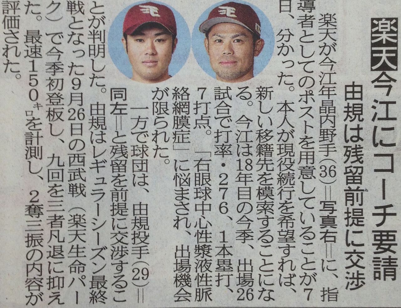 復活の兆しも見える宮城のスターの由規をさすがに戦力外にするようなことはしないわな